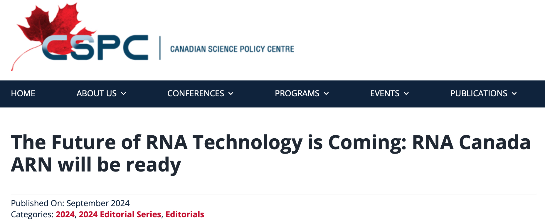 RNA Canada ARN has recently published an editorial about the future of RNA technology and the role that RNA Canada ARN wants to play in this, for the purpose of enhancing the lives of Canadians. It highlights our upcoming conference in Ottawa, RNA Canada ARN 2024: The Future of RNA Technology. The editorial is aimed […]
